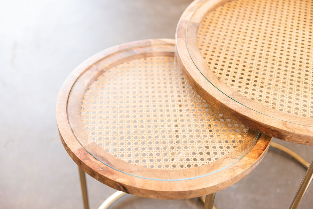 BROWSE OUR RENTAL INVENTORY Check out our galleries and follow us on Instagram to see events we created at beautiful venues across the Triad. For rental information browse our inventory and create a wishlist. Inventory Accent Tables, Buffets And Bar Carts Cane Top Nesting Tables (includes 2) Search