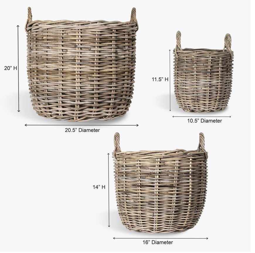 BROWSE OUR RENTAL INVENTORY Check out our galleries and follow us on Instagram to see events we created at beautiful venues across the Triad. For rental information browse our inventory and create a wishlist. Inventory Baskets, Compotes, Urns And Vases Handmade Rattan Basket Trio (includes 3) Search
