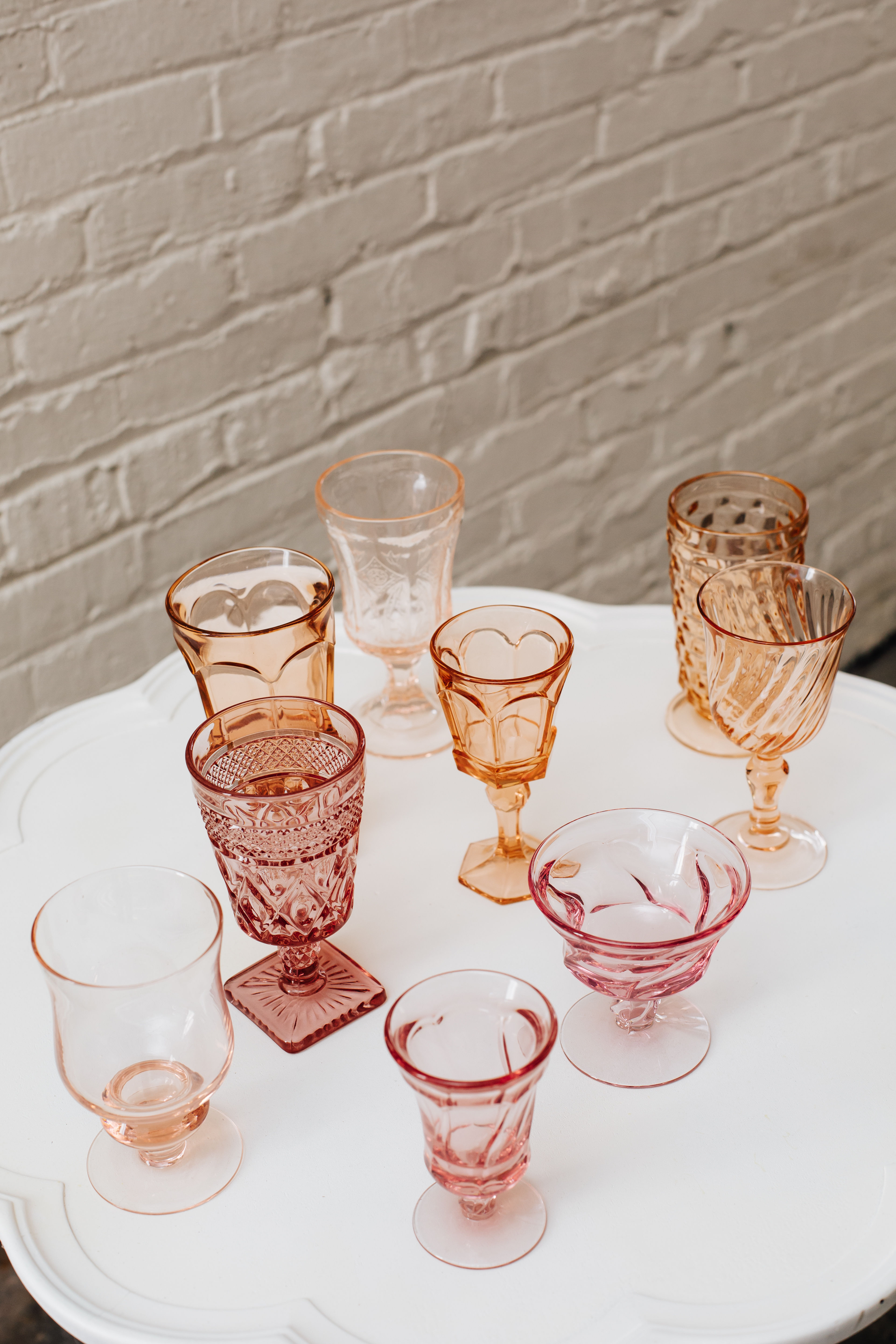 BROWSE OUR RENTAL INVENTORY Check out our galleries and follow us on Instagram to see events we created at beautiful venues across the Triad. For rental information browse our inventory and create a wishlist. Inventory Plates, Glassware And Chargers Pink Vintage Goblets Search